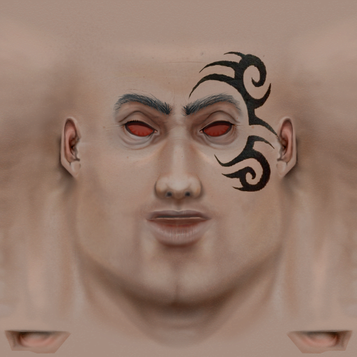 I'm going to tell you now, the shoulder tats would look awesome, the orange spiral, completely horrendous and out of place. Also, there's a neat little tool in ANY image editor other than paint called lasso select or free select, that lets you do that sort of thing yourself. You might try it out.