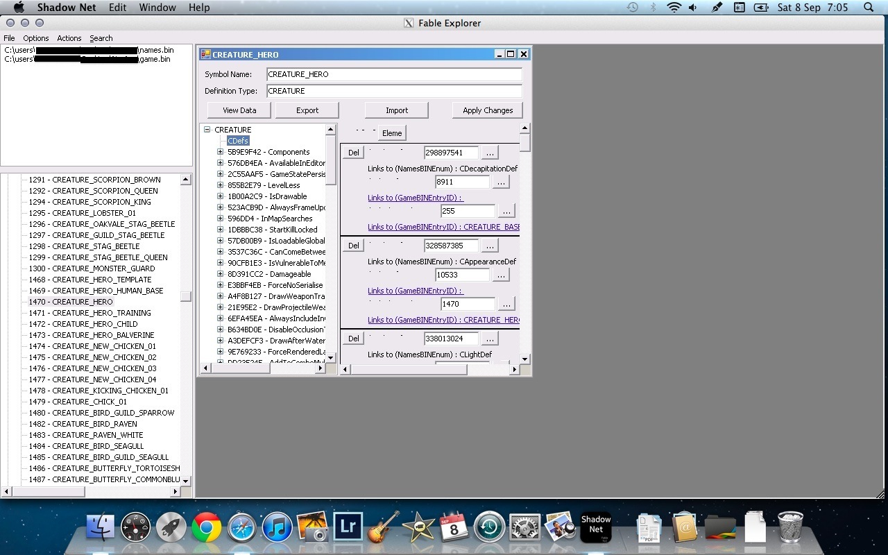 /Applications/Fable TLC/FableTLCData/data/CompiledDefs , backup all files, open ShadowNet, firstly load names.bin and you're ready to mod!