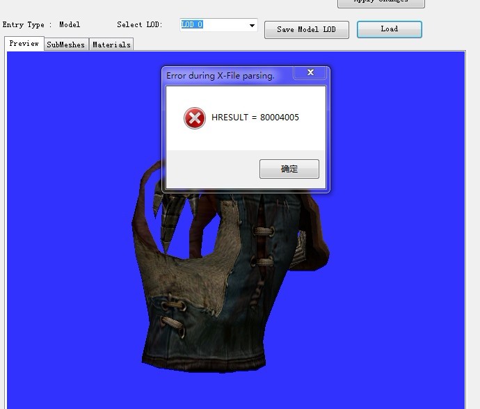 4. When i imported the new model into graphics.big, i got an error.