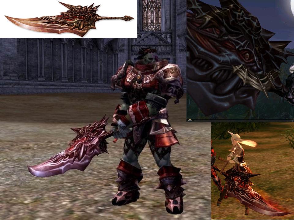 Its 2 handed, name :Demonic Sword Zariche or just Zariche