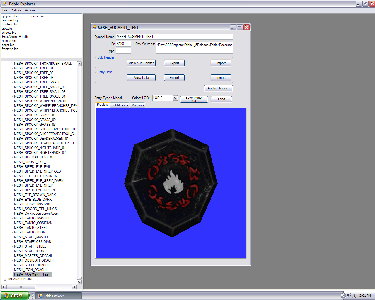 Alright, as the title suggests, this mod creates a new augmentation. I don't have any proof other than a screenshot of it stuck in my sword, because the title, the texture, and what it does are all that set it apart. I probably should have spawned two so that I could show you guys that bit, but oh well. I guess y'all will just have to trust me on this until I get some more screenshots. It'd still be very easy to claim it's a fake, but it's the best I can do. Anyway, this thing uses the fire augment effect because I couldn't figure out how to make it use anything else(I made this from the fire augmentation). It has a damage multiplier of 3, an experience multiplier of 3, health regen set to 3, and only one second between regens, same goes for mana as with health. It spawns as OBJECT_AUGMENT_TEST.(I was too lazy to re-pack it just for some entry and text.big editing.)